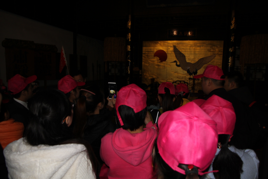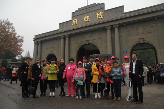 在導游的帶領(lǐng)下員工興高采烈的出發(fā)